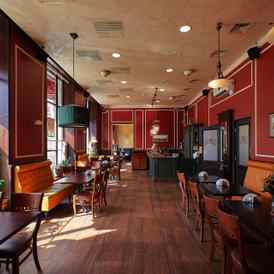 Все пироговые «Штолле» оформлены в стиле русской усадьбы начала двадцатого века — это спокойные тона природных оттенков.